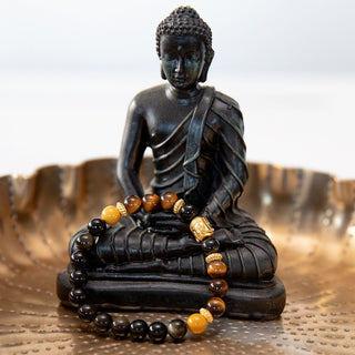- Echter Obsidian & Tigerauge mit vergoldetem Buddha