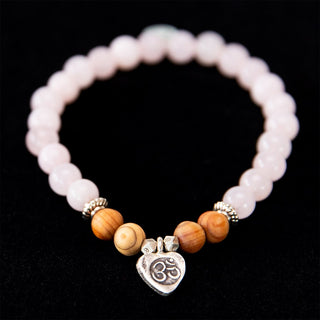 Yoga Armband mit Rosenquarz und Sandelholz & Om Anhänger aus Sterling Silber