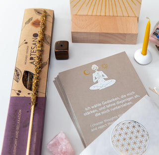 - Ganzheitliche Harmonie: Die Kombination der Bestandteile in den Sets stärkt Deine Verbindung zu Dir selbst und schafft einen Anker für einen achtsamen Alltag.