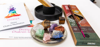 - 1 Set 7-Chakren Räucherstäbchen: Ein Räucherstäbchen für jedes Chakra – abgestimmt auf die Energie jedes Zentrums.