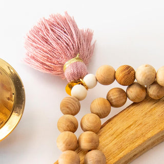 - Sandelholz-Perlen oder andere Naturmaterialien tragen zusätzlich dazu bei, eine beruhigende, geerdete Energie zu verbreiten.