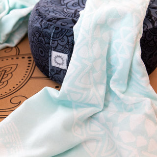 Mit einer großzügigen Größe von 180 x 95 cm und einem Gewicht von 400 g bietet sie die ideale Balance zwischen Leichtigkeit & Geborgenheit. Die beiden Farbvarianten Mandala Pink Bliss und Mandala Aqua Stillness bringen zusätzlich eine sanfte, inspirierende Energie in Deine Meditationspraxis.