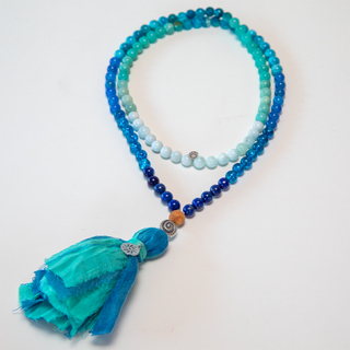 Eine Mala-Kette (auch Meditationskette), die typischerweise 108 Perlen hat, wird oft in der Mantra-Meditation verwendet, um die Anzahl der Wiederholungen zu zählen. Mit jeder Rezitation wird eine Perle zwischen den Fingern weiterbewegt, was hilft, den Fokus zu behalten und eine bestimmte Anzahl von Wiederholungen leicht zu verfolgen.